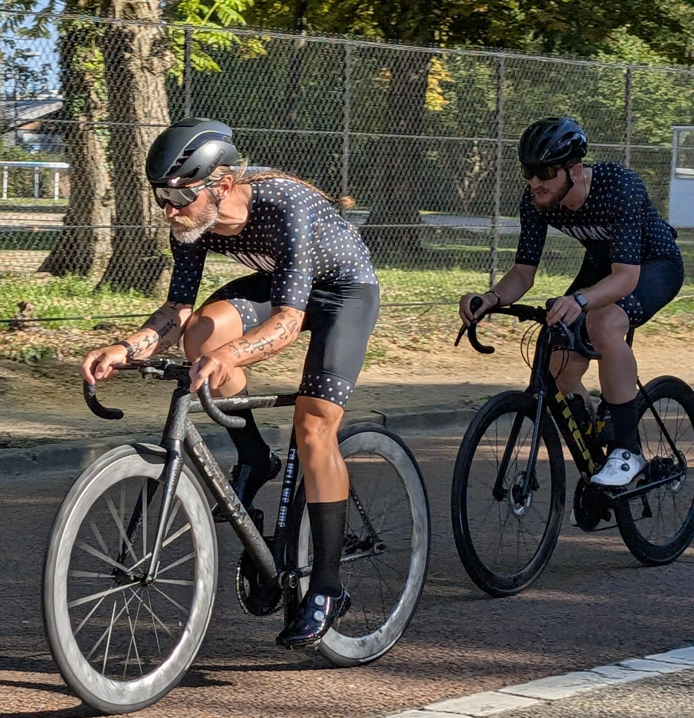 I started working with Paris-based cycling team SUR (Suicide Urban Riders) back in my Milltag days, where we helped develop their signature ‘Doomed’ brand. It’s a pleasure to continue working with this growing club of stylish riders and help develop their range of jerseys, racesuits and related apparel.